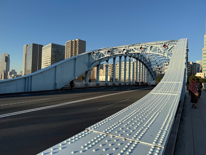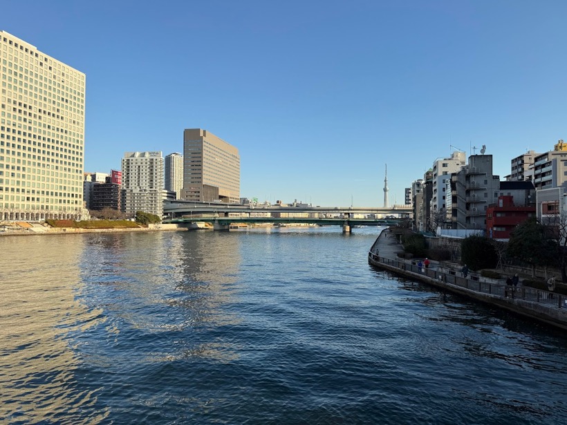 早朝の隅田川を渡る。
